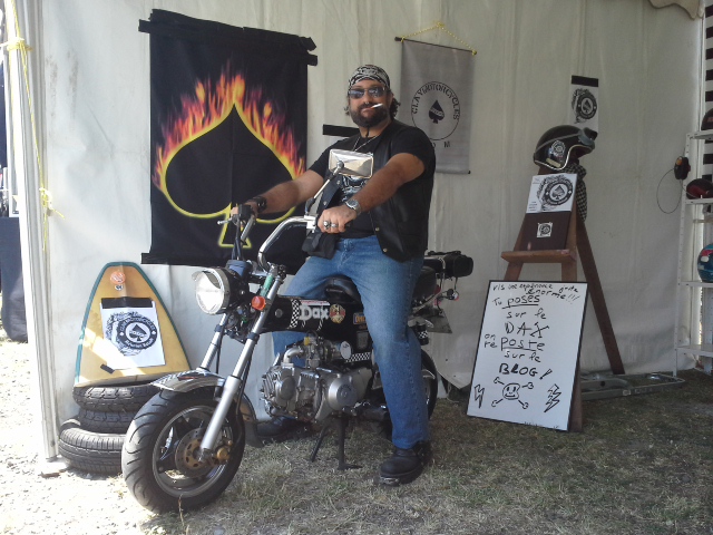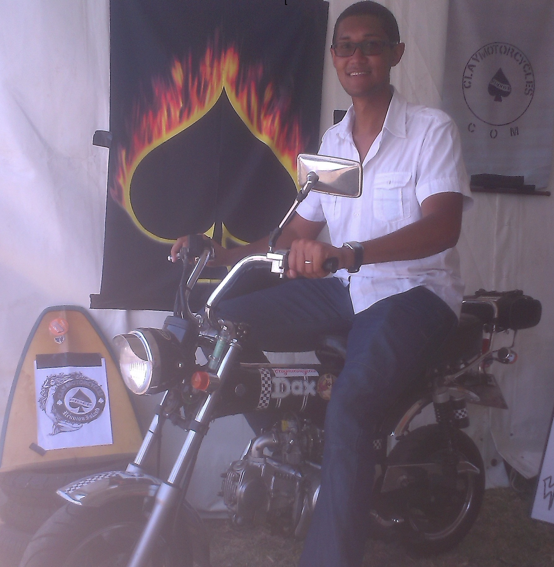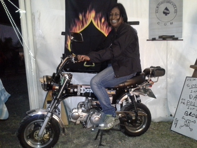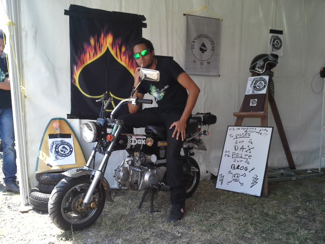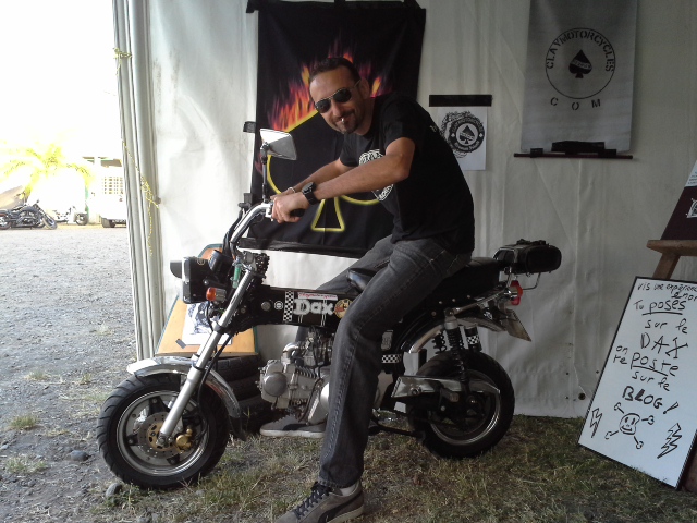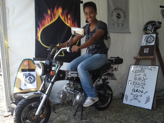 Une idée géniale de notre sirène, Aude-Emmanuelle, Alias Manuella, Alias Aude: installer un mini studio photo pour faire poser les visiteurs sur le stand du blog à la Fête des Motards de l’île de la Réunion!!!