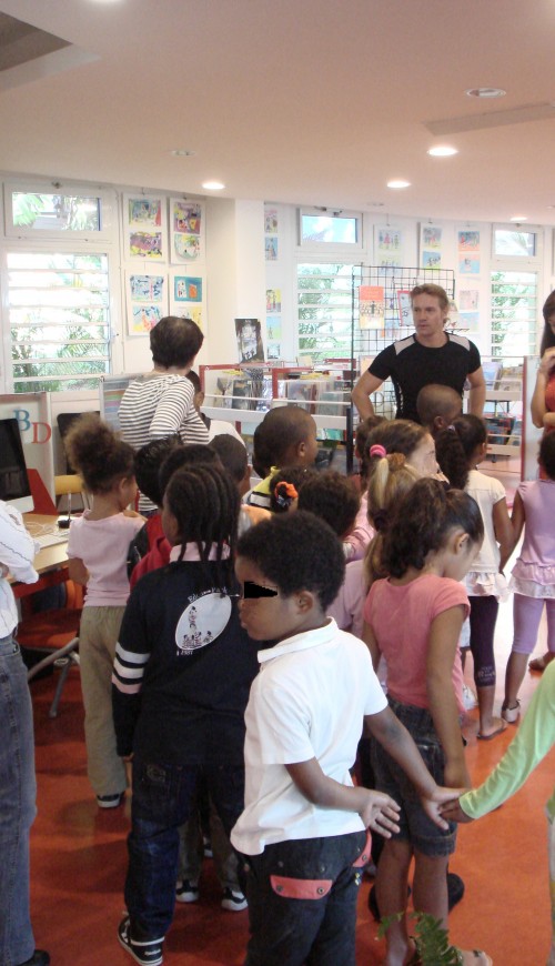 Pour ceux qui ne le savent pas, cela fait un moment que je sculpte (le béton armé !) et que je peints. J’ai réalisé une sculpture de 2m de haut avec des mômes de familles défavorisées, La Statue des Jouets cassés, un souvenir émouvant. J’ai aussi exposé sur le thème de la famille, cette fois en collaboration avec des petits de la petite école de la Source. Je ne peux vous montrer le visage de tous les mômes qui m’entourent, à cause du droit à l’image, mais c’était génial. Il y a aussi eu une expo pour le 20 Decemb à l’Office du tourismes de Ste Anne. Et des illustrations pour des bouquins, dont une couverture pour Monsieur Danyel Honoré.