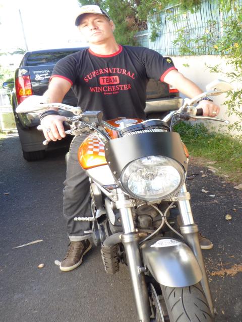 Vais peut-être refaire la boucle arrière. De toute façon ma selle est désormais mono place et plus basse. Je suis plus à pivoter sur la roue arrière et c’est très agréable question maniabilité. Pour les pièces, on ne trouve pas toujours en BT, mais il faut savoir que la fourche est une XJR 1300, que les freins avant sont ceux de la R1, etc.