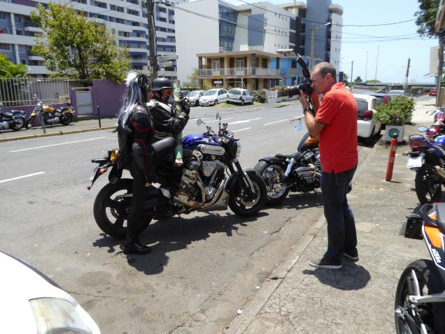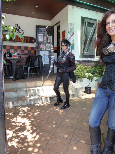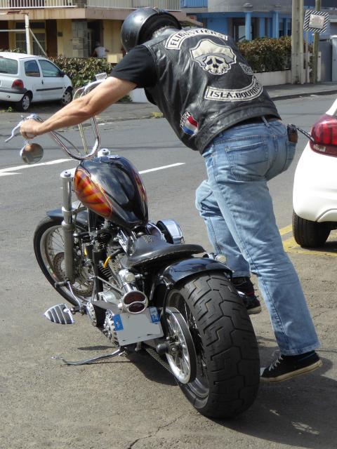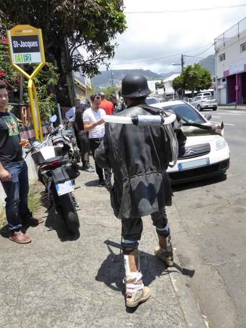 On ne va pas parler d’échec. C’est juste de la passion et de la rigolade. Les vacances scolaires, les maladies, les obligations familiales avec le début de la saison des mariages. Cela arrive. C’est déjà arrivé d’ailleurs. Mais parfois, sans trop qu’on sache pourquoi, la mayonnaise prend et on se retrouve à taper la discute avec plein de motards fiers de leur machine de caractère. Là, non. La peur de se déguiser? C’est vrai qu’on est restés de grands enfants et que pour moi la tenue du motard n’est pas qu’une affaire de protection. Avec Zorro, Robin des bois (j’ai des ancêtres à Sherwood, je vous jure !) et, plus récemment, Ecossais en kilt sans calebute , motard est la tenue la plus cool que je connaisse. Les gens se prendraient-ils au sérieux?