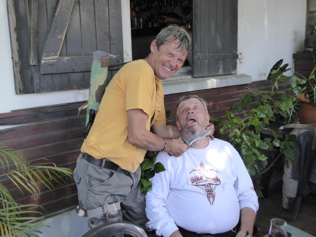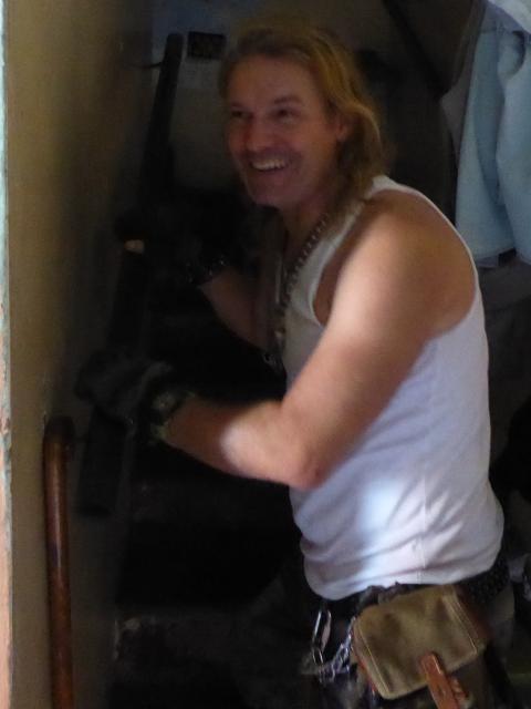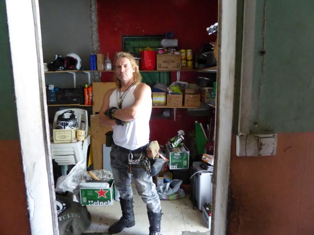 Et puis aussi celles et ceux qui se sont venus étaient adorables, et, quand ils se sont déguisés, ils ont mis le paquet. Stan et Graldine ont raflé les prix sans qu’aucun vote ne soit nécessaire. 15 jours à fignoler une tenue où on respire à travers un masque connecté à une boîte de bière 8.1, fallait le faire ! Et ce bazooka qui envoyait un vrai son, bien balaise ! Et l’arc et la crinière typiques des gardes du Dôme ! Aussi, Willy a laissé tomber sa pince à découper la tôle pour tenir le bar d’une main et chasser les lascars défoncés du quartier de l’autre, et c’était vraiment impec ! Je ne vous parle pas du repas aux petits oignons cuisiné par le Maître des lieux avec la même précision que quand il officie sur un moteur de V-Max des années 80. Là nous étions entre intimes, bien, au centre du monde quoi.