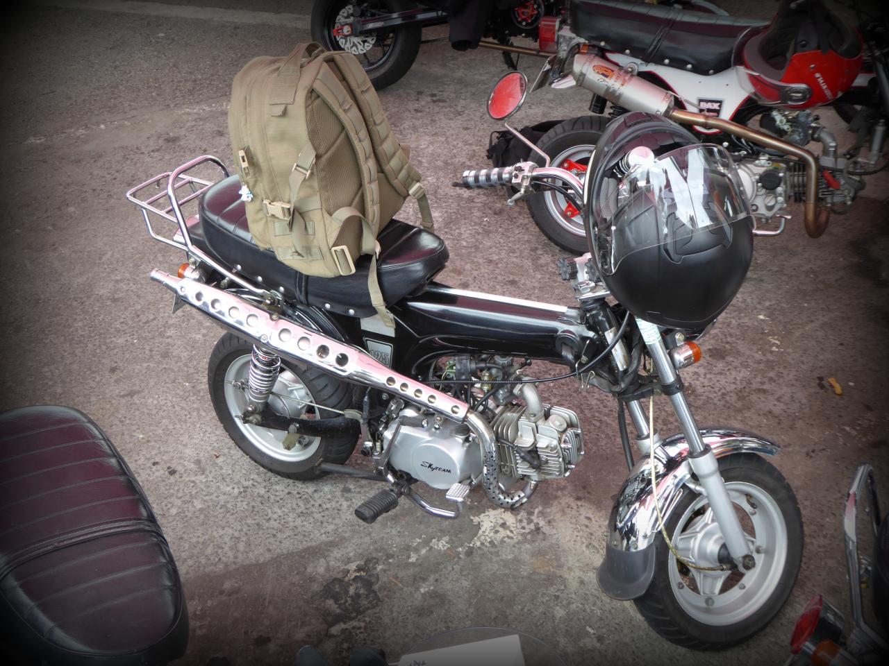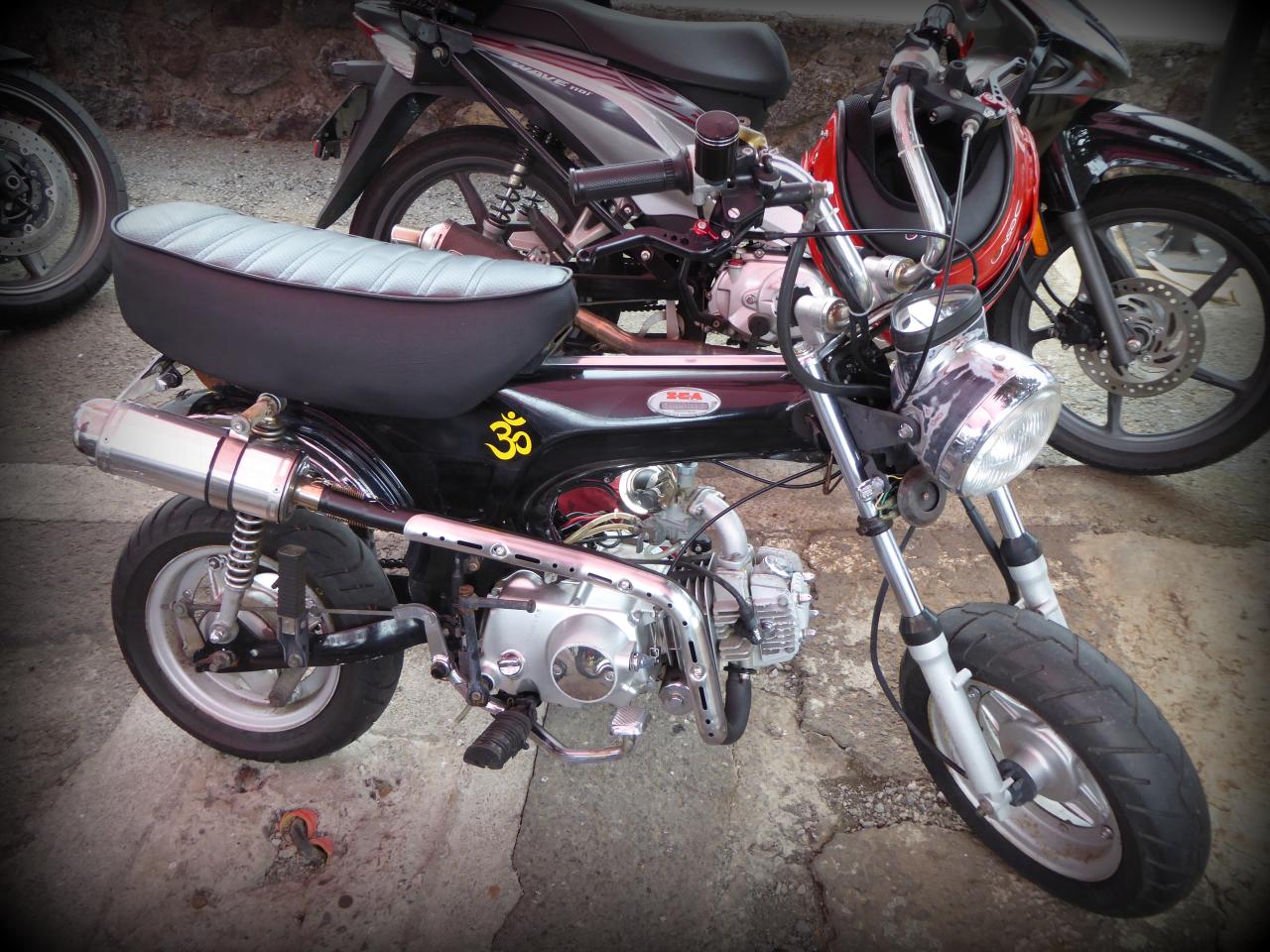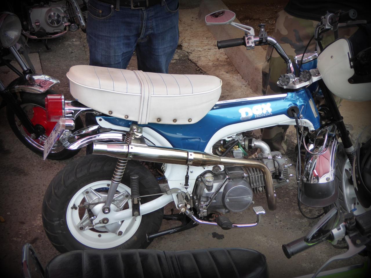 Deux écoles de custom chez les daxistes : le purisme vintage où on va tout retaper en mode 70’s, mais en mieux, comme mon pote réunionnais Lionel dans le Sud de la France avec son atelier mythique, le fameux Vespa Bouclard (post à venir très prochainement, hein Lionel?).