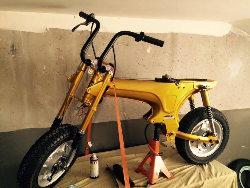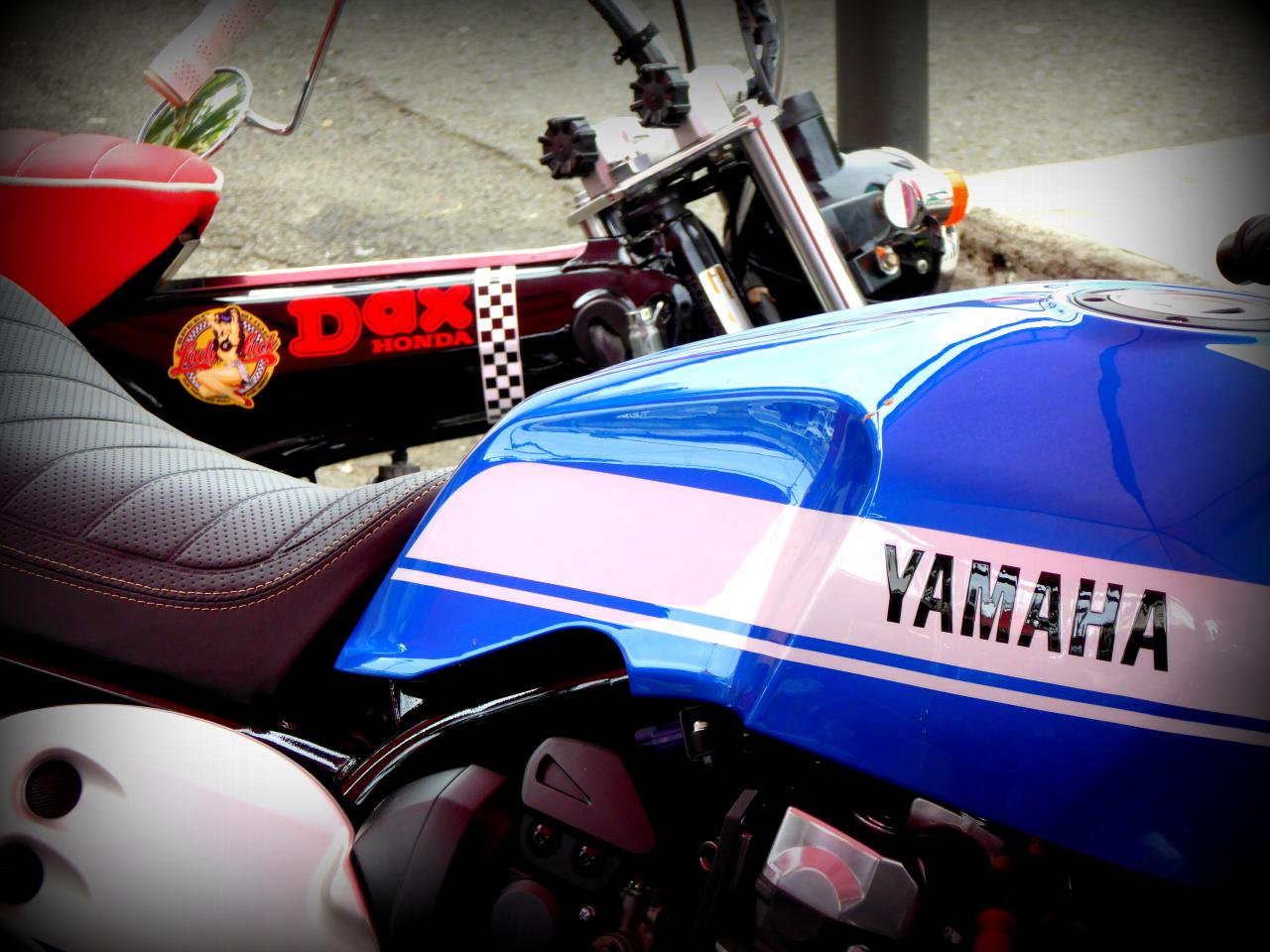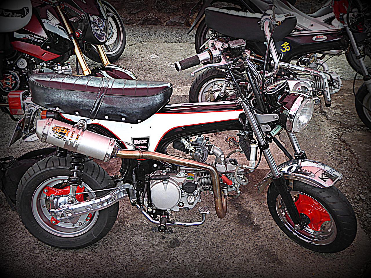 Deux écoles de custom chez les daxistes : le purisme vintage où on va tout retaper en mode 70’s, mais en mieux, comme mon pote réunionnais Lionel dans le Sud de la France avec son atelier mythique, le fameux Vespa Bouclard (post à venir très prochainement, hein Lionel?).