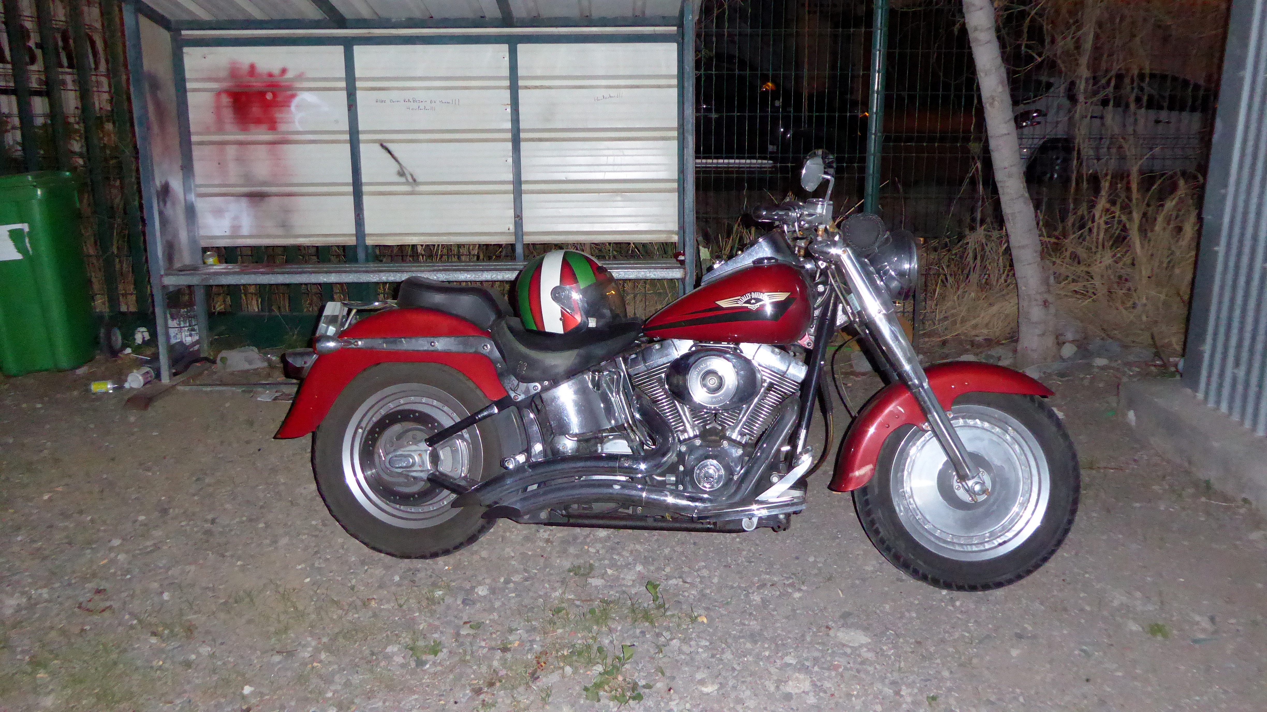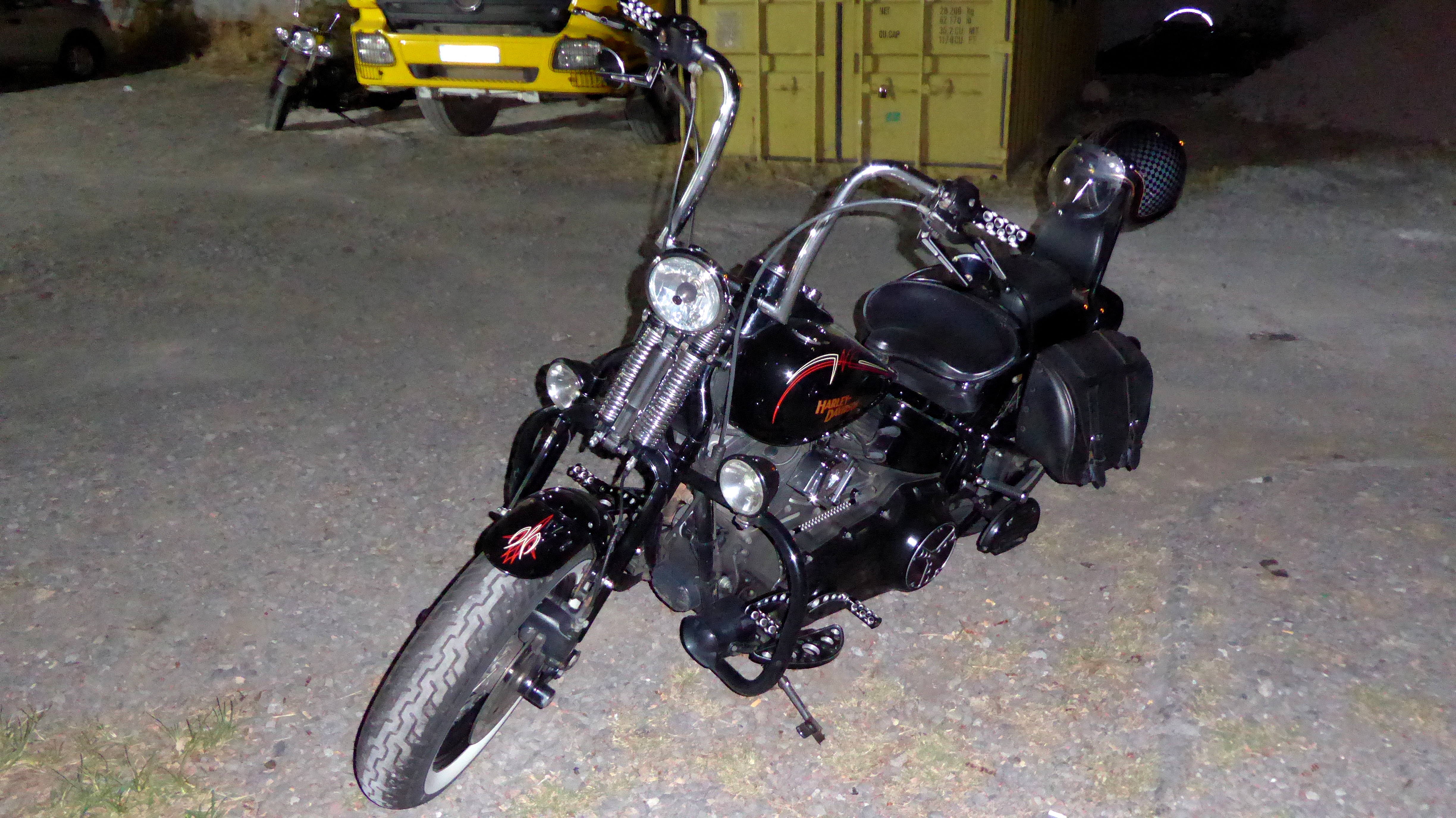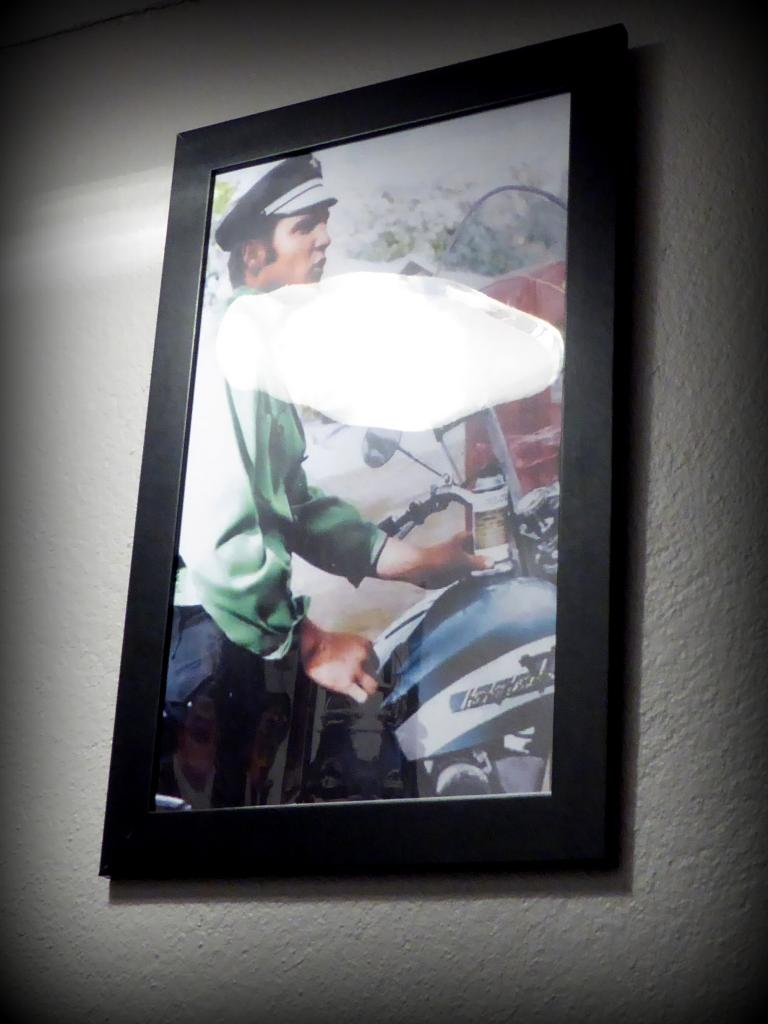 Bon, mais que dire maintenant? Par exemple, je peux ajouter que pour les cadeaux de Noël, je ne vais pas me taper les délais en ligne ou la galère des centres commerciaux. Le week-end, j’irai voir AB-HD Kustom Garage & Shop. Je vous laisse avec mon petit album de photos prises sur le vif. J’y retournerai en plein jour, c’est promis.