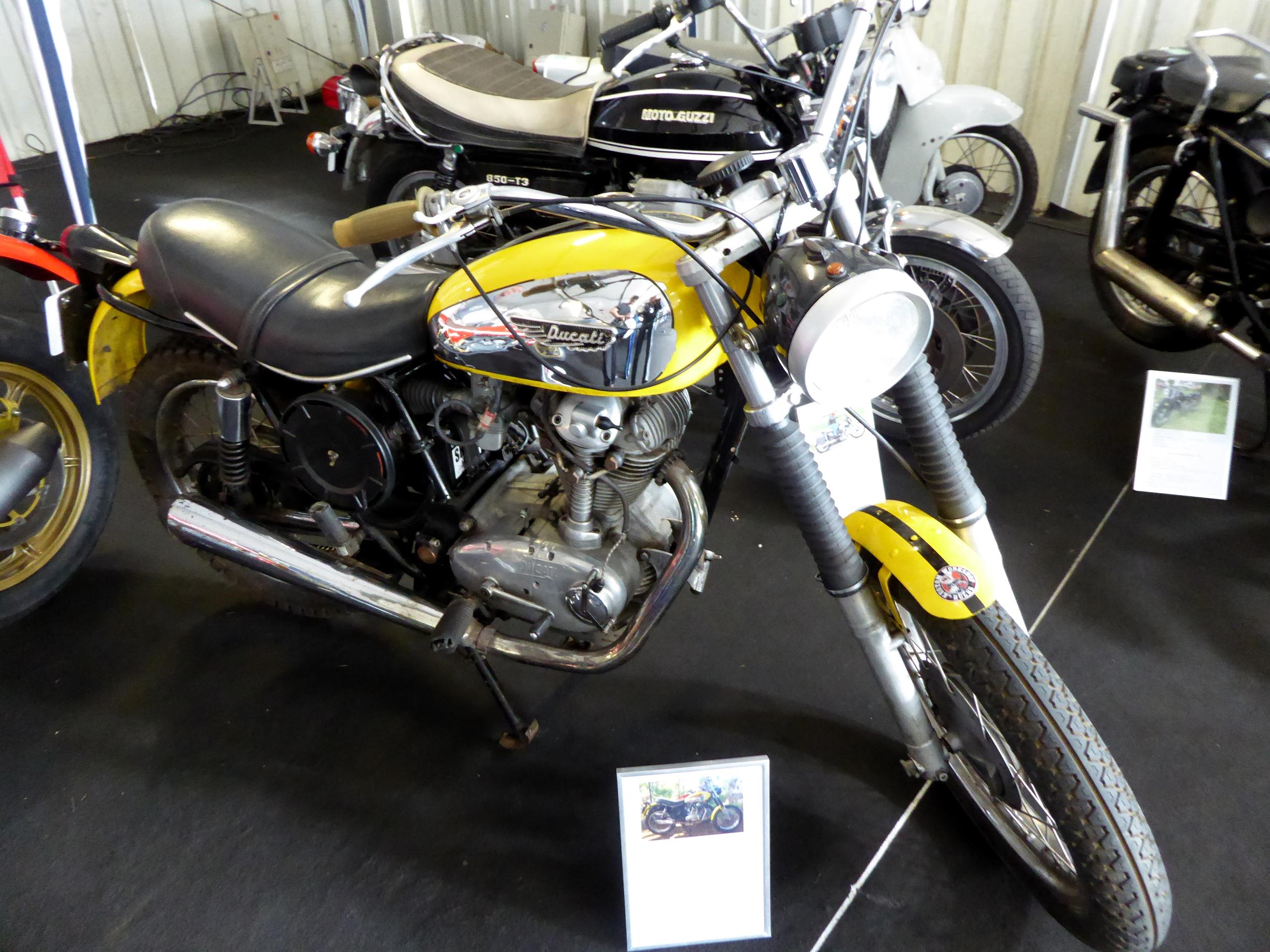 -si tu veux comprendre l’évolution sociologique de la moto. En gros, autrefois, c’était un moyen de locomotion cheap et dangereux pour les vrais durs, les pauvres et les passionnés. Maintenant, tu constateras qu’au salon, ça commence par la crèche où on surveille ton môme, et que plus tu progresses vers les stands des concessions haut de gamme, plus tu découvres un public de retraités fortunés venus « vivre leur rêve d’enfant » en se trémoussant sur des motos bardées de plastoc, toutes pareilles, gavées d’électronique chinoise emballée dans des caches qui ne trompent que les ignorants. J’ai vu une 1600 aussi laide qu’un gros scooter qui affichait le prix que j’ai âprement déboursé il y a 8 ans pour me payer mon pick up. J’ai aussi cru voir un « scrambler » Ducati, mais non c’étais juste une truc de chez Triumph mais qui avait pompé la livrée italienne. de toute façon, pour voir le vrai, il faudra aller au BMC, quelques lignes plus bas dans ce post. Je comprends mieux pourquoi ces gens me méprisent au feu rouge, tout fier sur une moto qui ‘m’aura coûté entre 2000 et 3000 boules et sur laquelle j’ai progressivement tout refait seul ou avec des potes. Leur machin neuf qui ne sort que par beau temps coûte plus de 10 fois le prix de ma meule ! Nous ne sommes plus dans la lutte entre mods et rockers, lesquels étaient tous issus des classes laborieuses. Non. Désormais, c’est juste la lutte des classes. Attention : le rêve d’enfant, je comprends. C’est juste le mépris qui ne passe pas. Surtout qu’il émane souvent de néophytes.