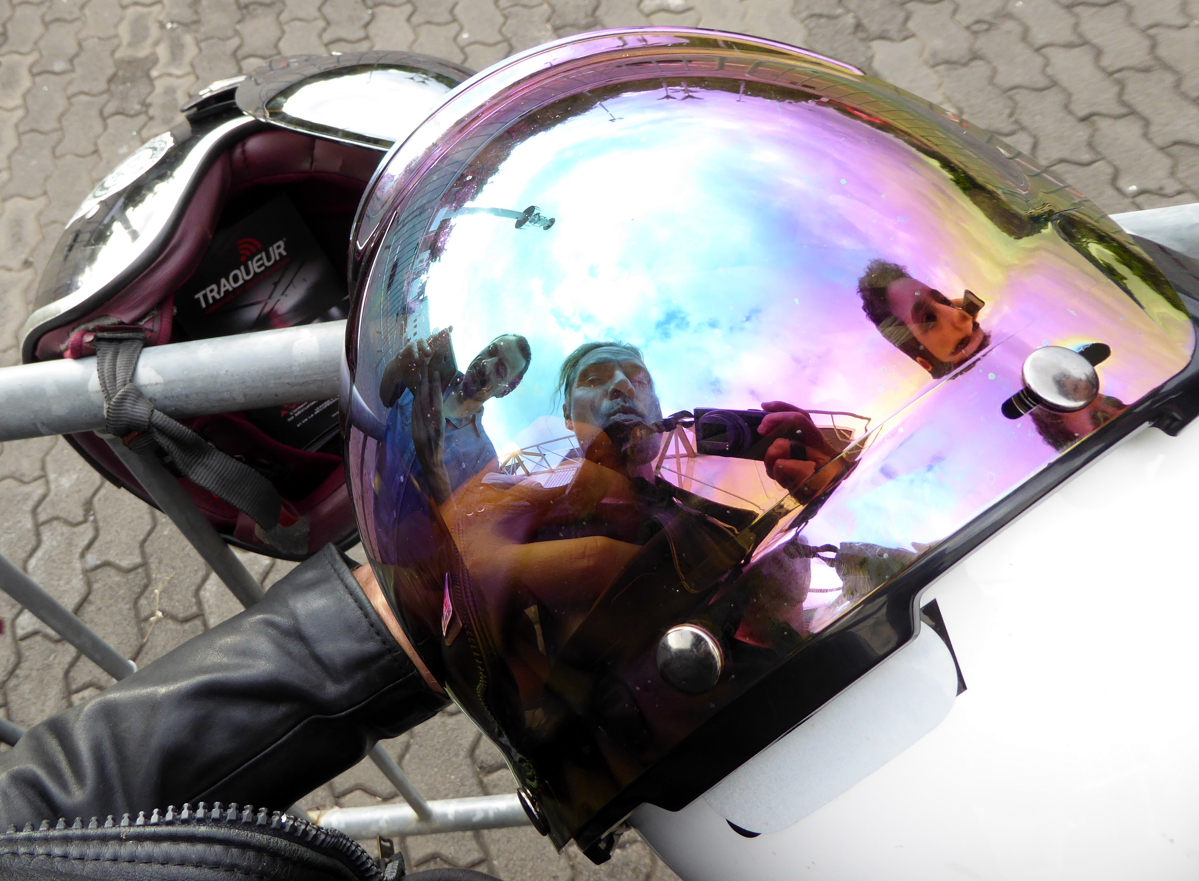 -si tu veux tester ta nouvelle meuf ou ton nouveau mec. Si, après avoir fait « vraoum vraoum » dans le vide en tordant en vain la poignée gauche d’un guidon américain, ta nouvelle conquête demande quand on va enfin faire les courses, ou s’inquiète de l’horaire de fermeture de la Cité des Arts, il est encore temps. Tu peux encore sauver le sens de ta vie et laisser là cette personne, t’acheter vite un des nombreux casques Shark Raw pour mieux te fondre dans la foule, et foncer vers la sortie, vers ta bécane, vers la liberté !