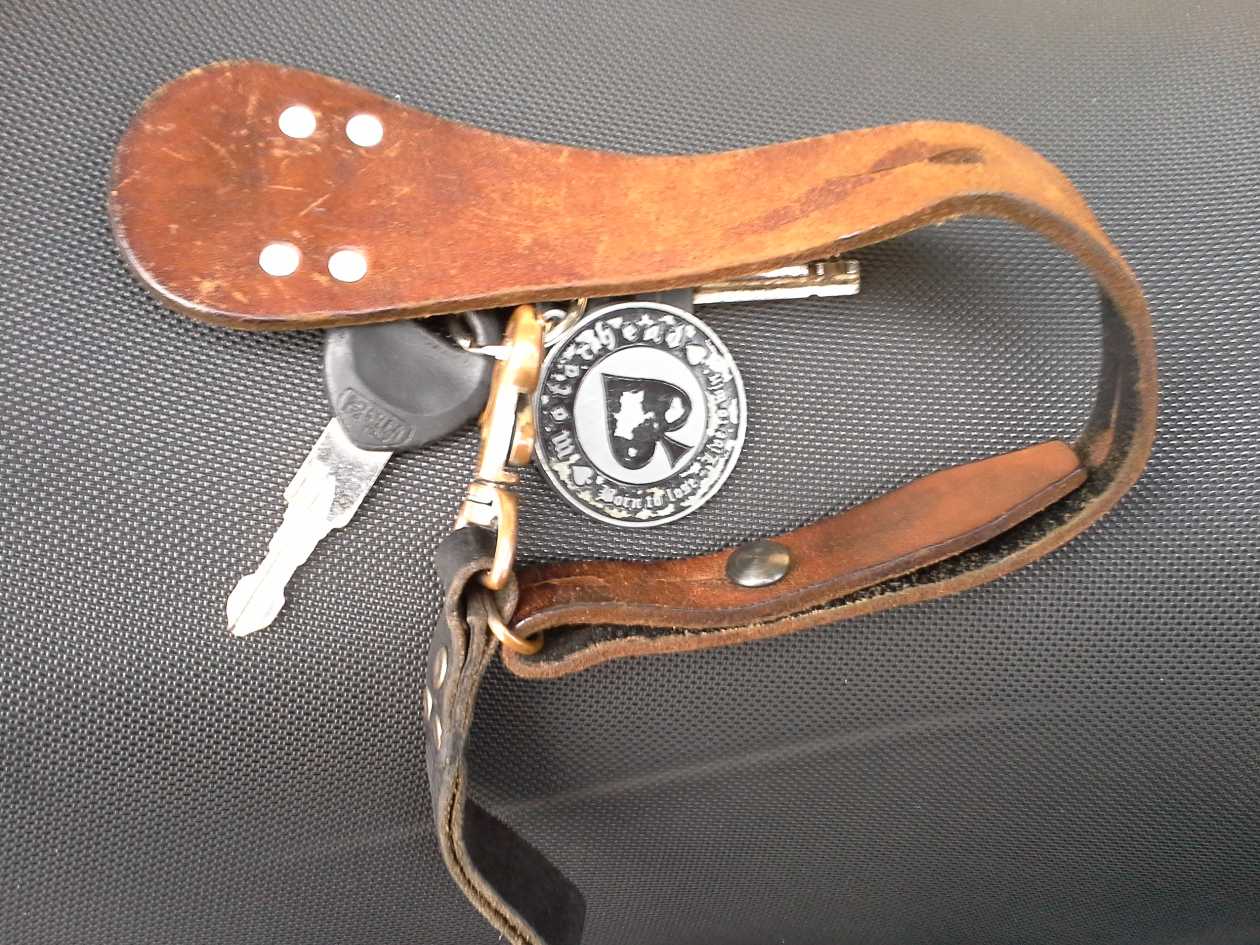 On me l’a tellement faite celle-là, je peux bien me venger! Une rubrique originale et unique au monde…jusqu’à preuve du contraire. Souvent oublié, mais plus qu’un simple accessoire. Un objet capital pour nous, ce lien qui ouvre les portes des gaz! Il nous suit partout, enchaîné bien au chaud au fond d’une poche, ou devant nous prêt du compteur ou du genou, discret miroir de la façon dont nous projetons une certaine image de notre monture et de son pilote. Ne pas perdre, ne pas oublier, sentir immédiatement sous le cuir et le tissu des vêtements. Ouf, tu es bien là! Extension du domaine de la vitesse, je te fais tourner dans ma main à la terrasse des cafés ou sur mon bureau au boulot. Elle n’est pas avec moi, mais tu es là, toi, au moins, comme un éternel possible. Je te fais sauter dans les airs. Je te saisis. Je plaque tout là. Je me casse!